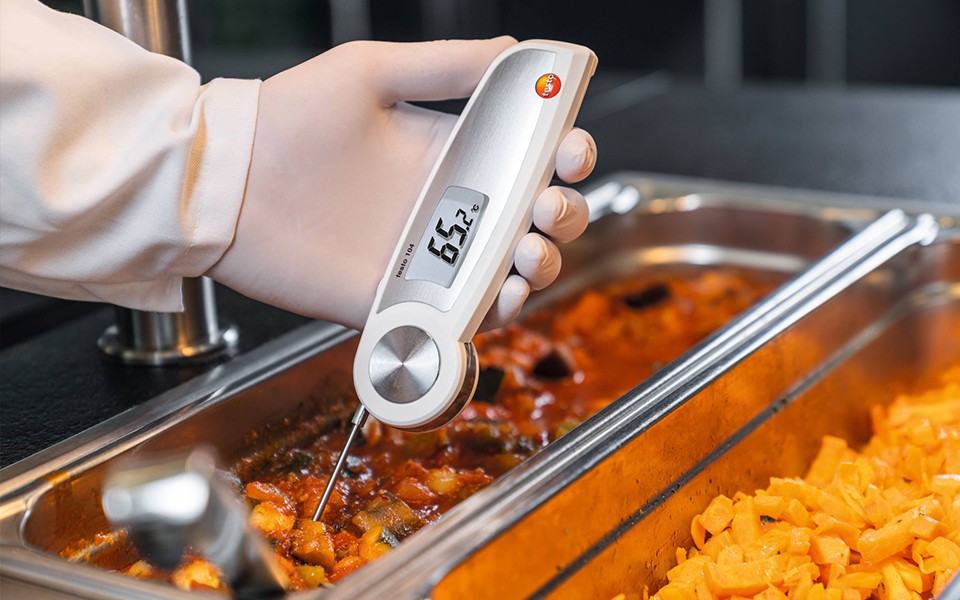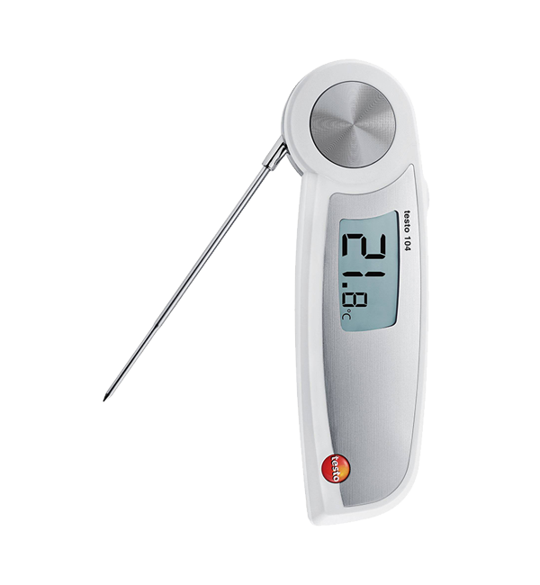 testo 104折疊式食品中心溫度計符合 HACCP 和 EN 13485法規要求,同時防塵防水設計,是食品行業理想的測量工具。