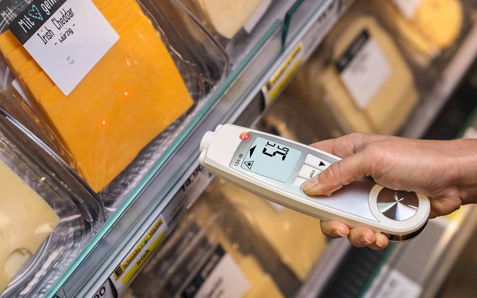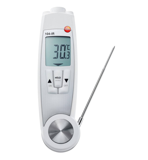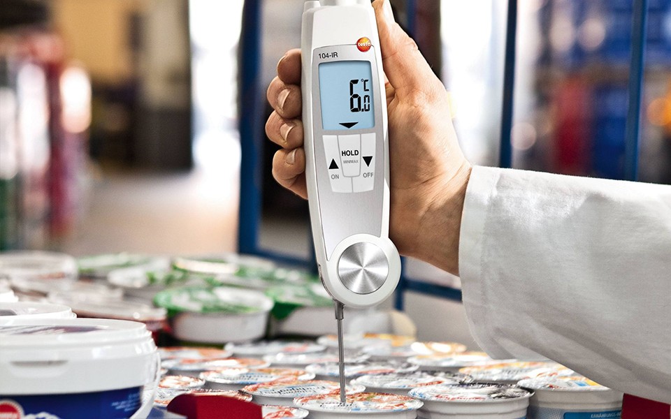 食品收貨,架上陳列食品,食品倉儲,testo 104-IR 食品安全測溫儀為您忙碌的食品日常安全檢查工作提供快速準確的溫度測量。適用于食品業(yè),餐館以及食品零售業(yè)。