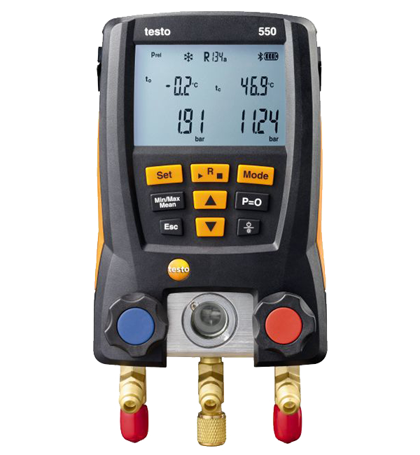 testo 550智能基礎級電子冷媒表組,包括2個鉗式表面溫度探頭,儀器箱,出廠報告,電池和智能APP(需用戶下載)。