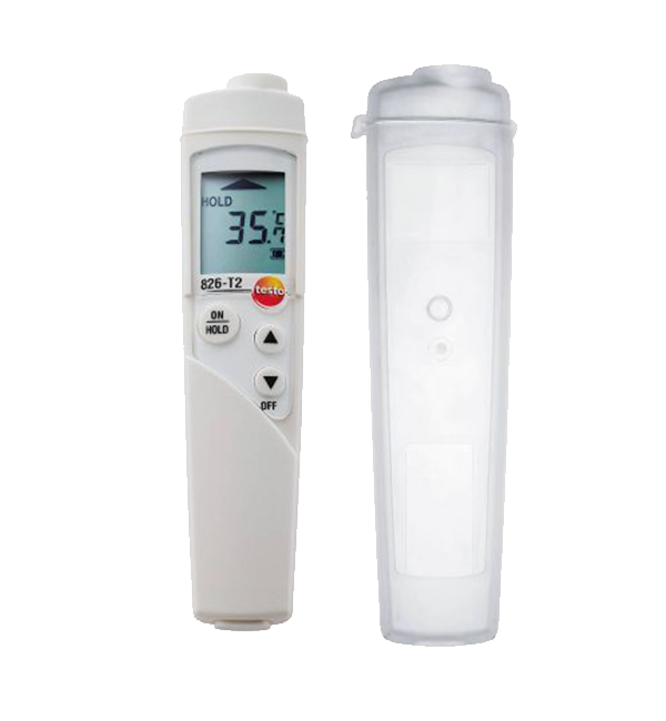testo 826-T2 紅外測溫儀,包含保護軟套,支架和電池。