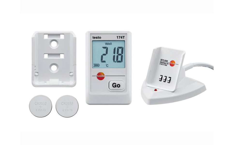testo 174 T 迷你型溫度記錄儀,內置單通道(NTC),包括墻面支持架、電池 (2 x CR 2032 )和出廠報告。