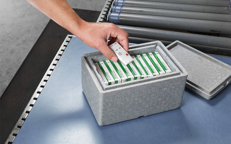 通過testo 184 T1溫度數據記錄儀,您可以對藥品、食品或電子產品等敏感貨物的運輸進行最長時間為90天的監視。