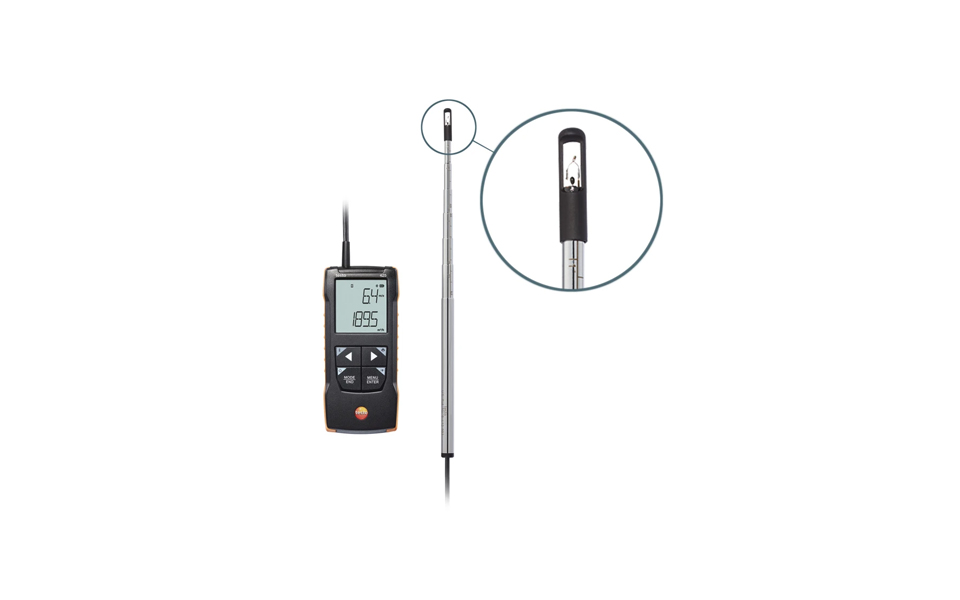 testo 425熱線風速計可伸縮探頭(最大長度820mm)方便進行管道測量。在通風管道或出風口中進行簡單、快速、精確的風速測量和風量計算,更容易在高空或大直徑管道中完成測量工作,所有相關風量計算,如風量或時均和多點平均值,都是儀器自動執行的。